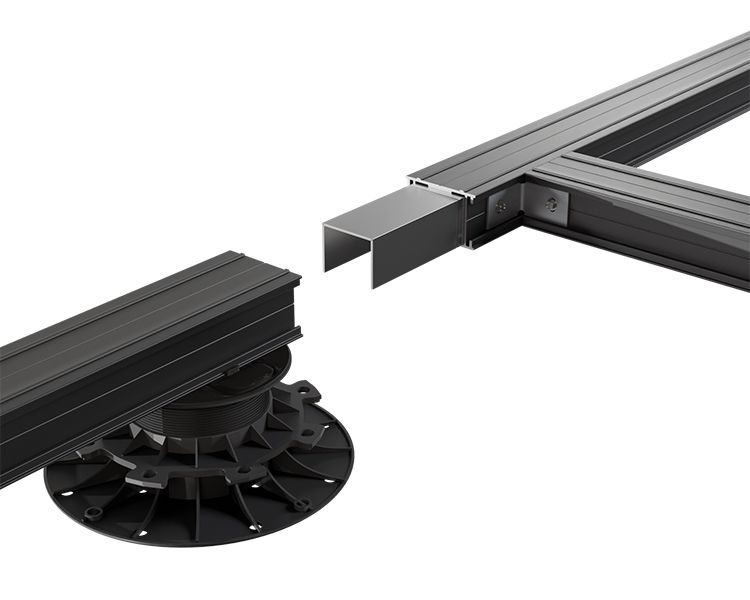 Structural® aluminium joists have a specific design and can be easily clipped onto our NIVO decking pedestals.