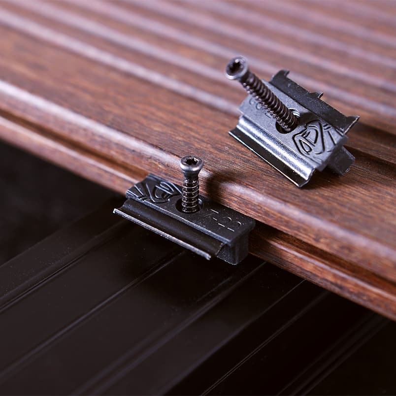 The new Cobra Hybrid clip can be adapted to any type of groove thanks to its stainless steel wings on the underside. Building your deck with our clips is much quicker and more efficient. They ensure a firm hold of your deck boards on the joists.
