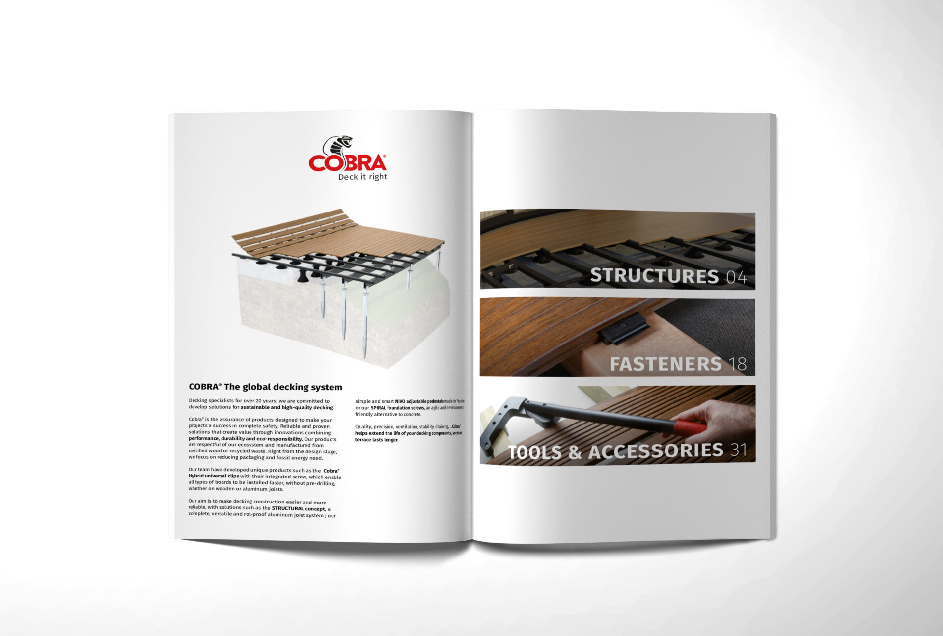 The Cobrafastener® fastening system has been developed for over 15 years to simplify the installation of wooden decking and, above all, to ensure that wooden and composite deck boards are held in place effectively.
