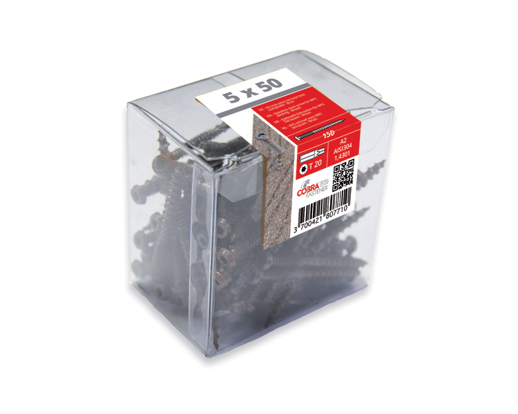 The concave screw head retains excess for a clean finish. The colour of the screw is matching with the colour of the board to obtain an impeccable finish.