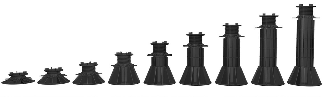 NIVO® pedestals for concrete, ceramic or wood slabs are available in 5 heights from 25 to 240 mm, with the possibility of raising them up to 530mm with the addition of 5 extensions.