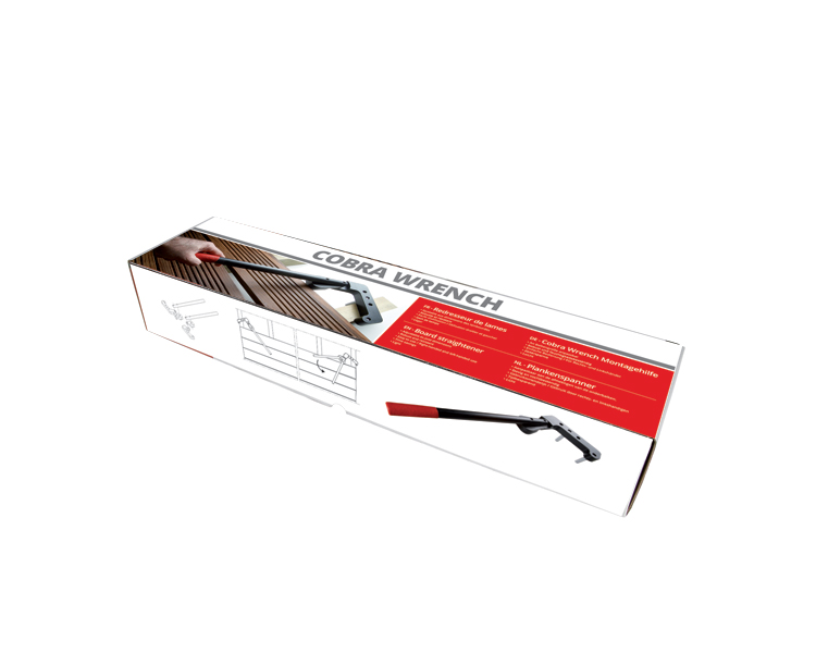 The Cobra® WRENCH is an ergonomic and innovative deck board straightener that is unique on the market. It makes it very easy to straighten deck boards that are suffering from warping, edge sagging or the "banana effect", and saves you precious time when laying your decking.