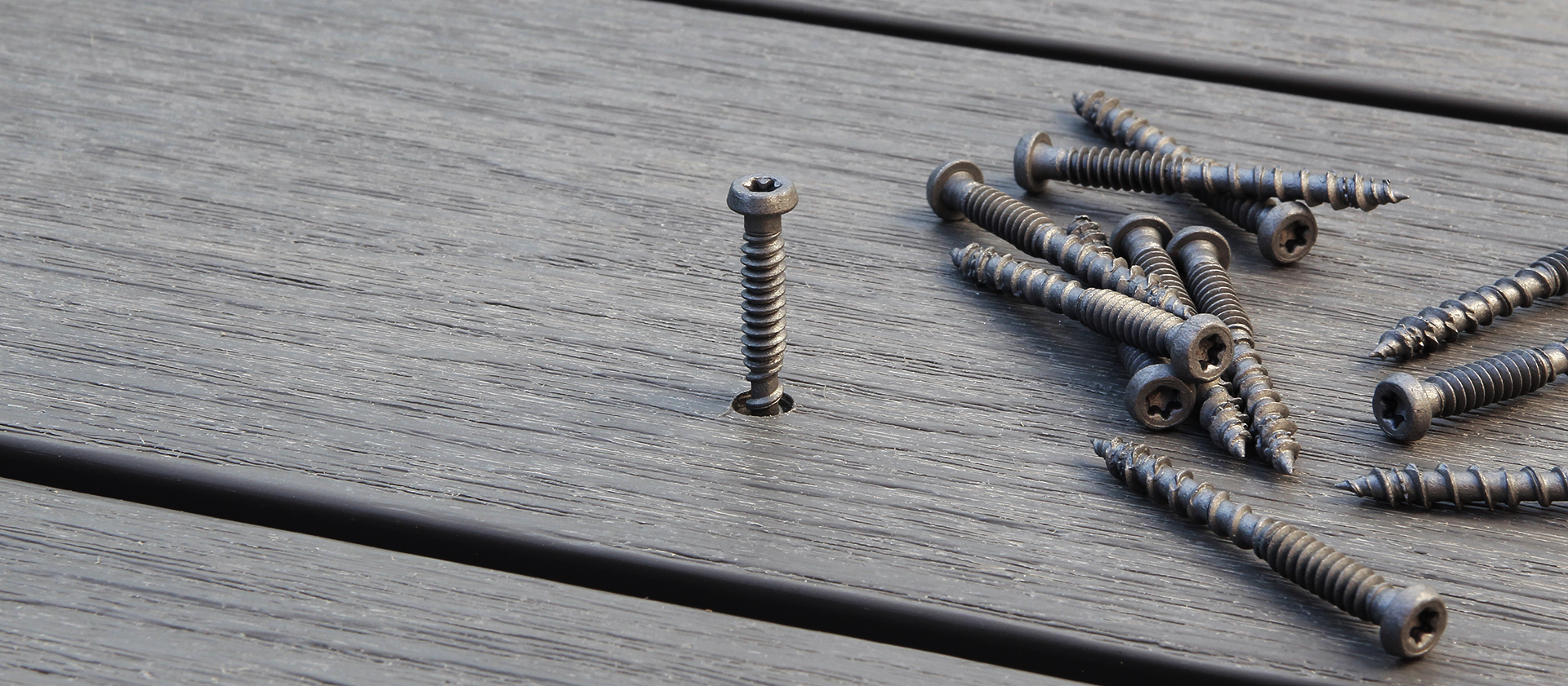 The straightener then pushes the deformed deck board and locks it in place, leaving both hands free to fix it easily with screws or clips.