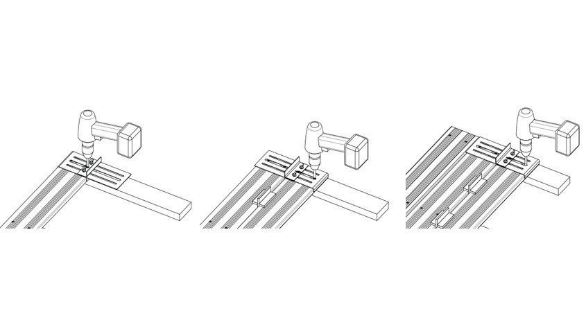 By placing the template on the screws of the previous planks, you can align yourself quickly and easily to achieve professional, high-quality work.